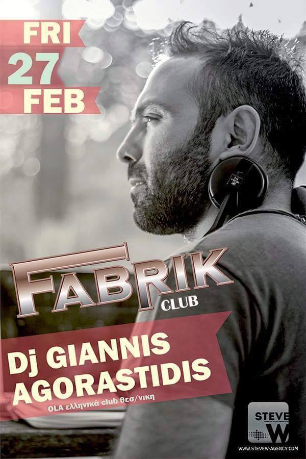 Fabrik club Φλώρινα: DJ Giannis Agorastidis , Την Παρασκευή 27 Φεβρουαρίου
