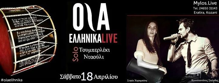 Άλλο ένα Mylos.Live έρχεται αυτό το Σάββατο 18 Απριλίου ,H Σοφία Χαραμπάτη Live με σόλο ΤΟΥΜΠΕΡΛΕΚΙ και ΝΤΑΟΥΛΙ,τον γνωστό Σε όλους μας Κων/νο Σκόρδα στη Φωνή , και τον Juan Bantianis στη μουσική….. Να μας ξεσηκώσουν με τα πιο δυνατά Ελληνικά κομμάτια…….