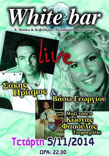 White bar live, Με τον Σάκη Πρίαμο και την Βάσω Γεωργίου, την Τετάρτη 5 Νοεμβρίου.