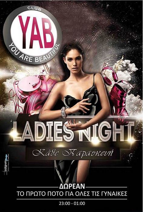 ΠΑΡΑΣΚΕΥΗ 07.11 ΚΑΙ ΚΑΘΕ ΠΑΡΑΣΚΕΥΗ “LADIES NIGHT” @ YAB CLUB” ΔΩΡΕΑΝ ΤΟ ΠΡΩΤΟ ΠΟΤΟ ΓΙΑ ΟΛΕΣ ΤΙΣ ΓΥΝΑΙΚΕΣ (23:00-01:00)