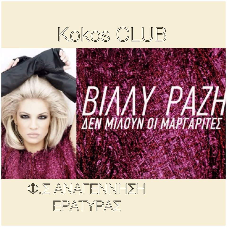 To Kokos Cafe-club και το Φ Σ Αναγέννηση Εράτυρας σας προσκαλούν σε μία μοναδική λαϊκή βραδιά με την Βίλλυ Ραζή την Παρασκευή 21 Αυγούστου