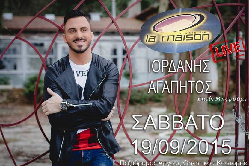 Ο Ιορδάνης Αγαπητός στο Music bar Lamaison στο Άργος Ορεστικό, το Σάββατο 19 Σεπτεμβρίου