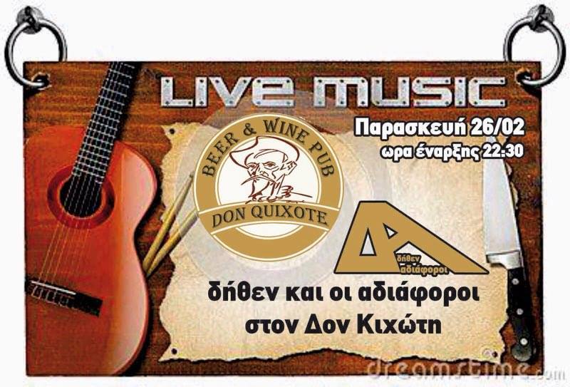 Δήθεν και οι αδιάφοροι live στον Δον Κιχώτη, την Παρασκευή 26 Φεβρουαρίου.