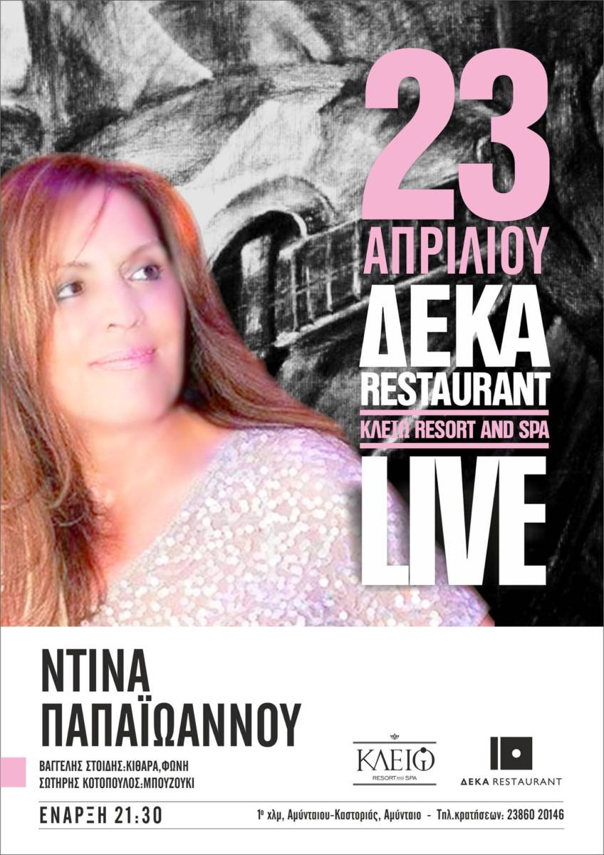 Η Ντίνα Παπαϊωαννου live στο Κλειω resort & spa στην Φλώρινα, το Σάββατο 23 Απριλίου