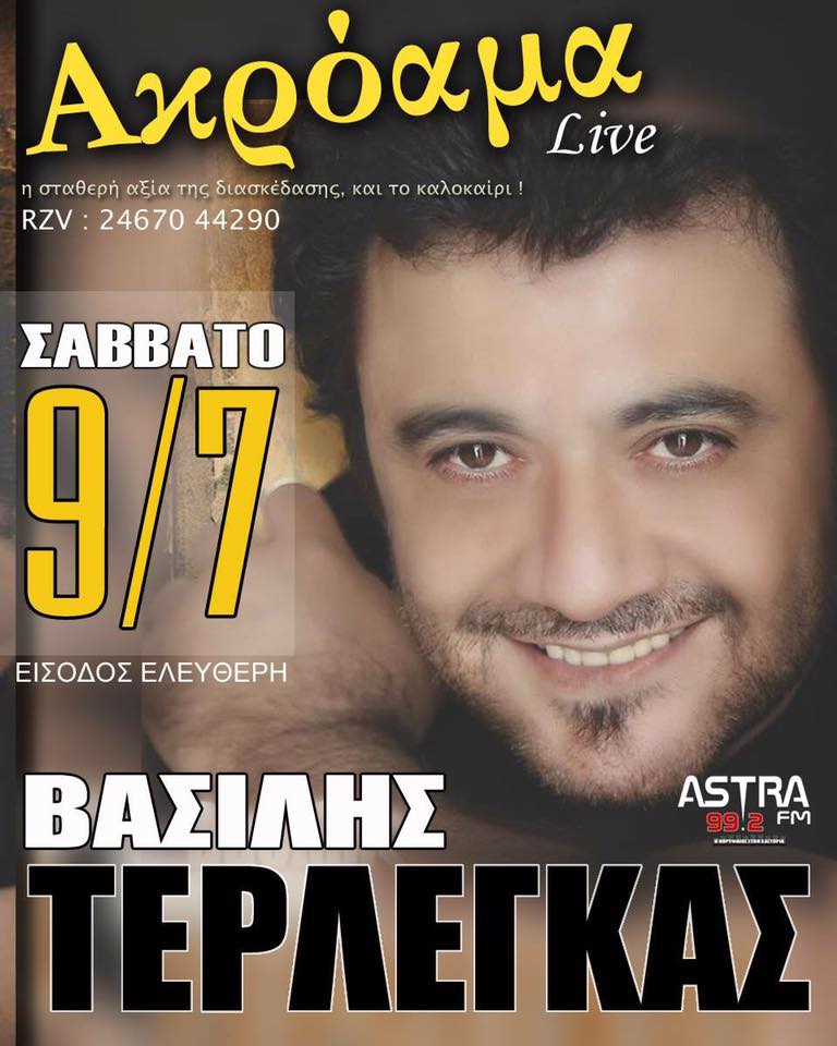 Ο Βασιλης Τερλεγκας στο Ακροαμα live στην Καστοριά, το Σάββατο 9 Ιουλίου