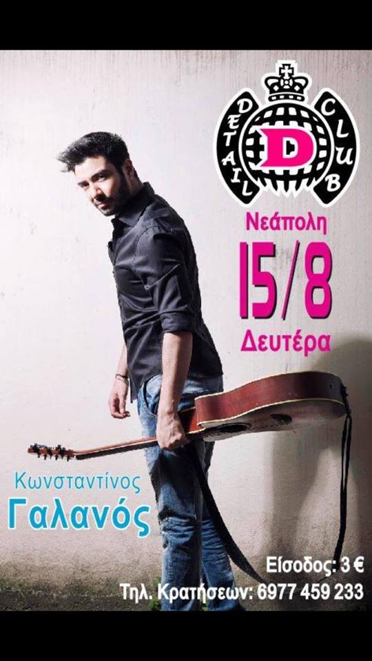 Ο Κωνσταντίνος Γαλανός στο Detail club στην Νεάπολη, τη Δευτέρα 15 Αυγούστου