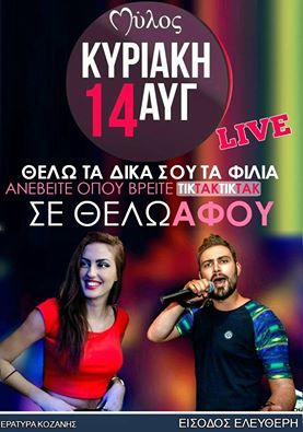 Η Αλεξάνδρα Ντάλας, & ο Κων/νος Σκόρδας live στο Μύλος bar στην Εράτυρα την Κυριακή 14 Αυγούστου