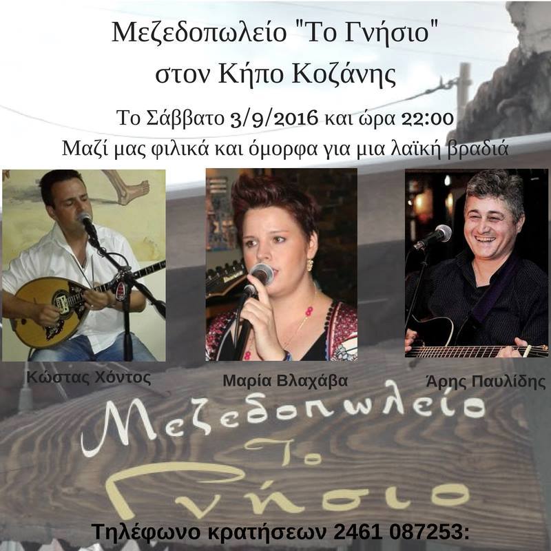 Λαϊκή βραδιά στο μεζεδοπωλείο “Το Γνήσιο” στον Κήπο Κοζάνης, το Σάββατο 3 Σεπτεμβρίου