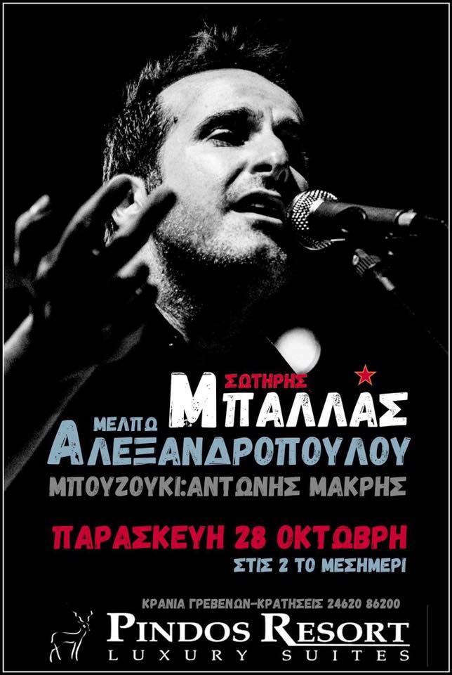 Ο Σωτήρης Μπαλλάς live στην μουσική σκηνή του Pindos Resort στα Γρεβενά, την Παρασκευή 28 Οκτωβρίου