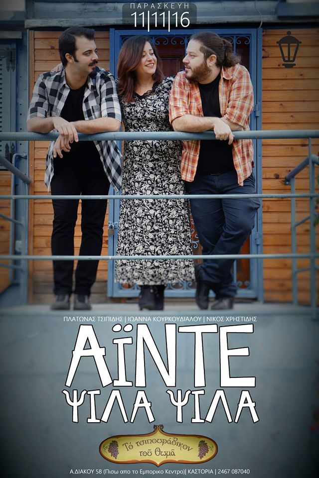 Οι “Άιντε ψιλά ψιλά” unpluged στο Τσιπουράδικο του Θωμά στην Καστοριά, την Παρασκευή 11 Νοεμβρίου .