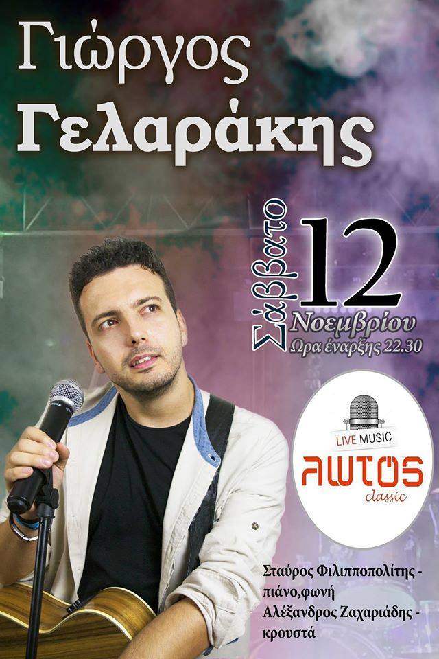 Ο Γιώργος Γελαράκης Live στο Λωτός classic στα Γρεβενά, το Σάββατο 12 Νοεμβρίου