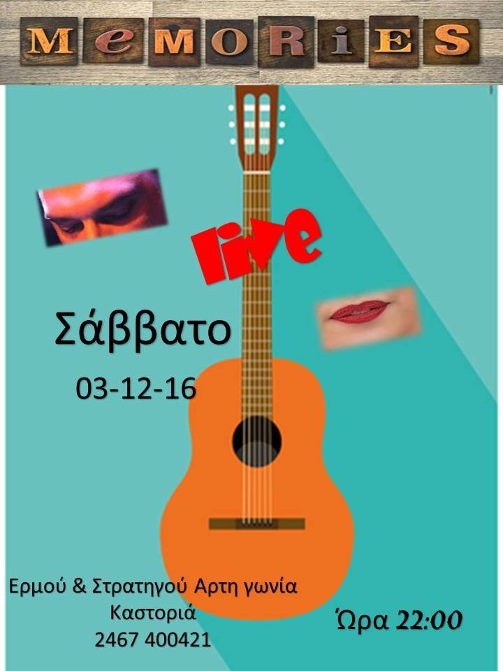 Live με τον Κώστα Νάτσιο και μια φωνή έκπληξη στο Memories bar στην Καστοριά, το Σάββατο 3 Δεκεμβρίου