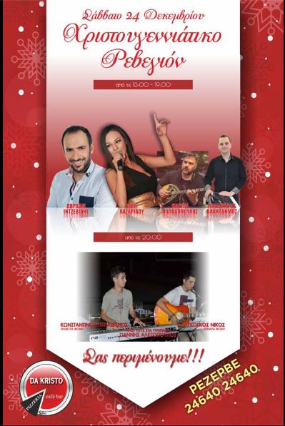 Ρεβεγιόν Χριστουγέννων με ζωντανή μουσική στο Da Kristo στα Σέρβια, Σάββατο 24 Δεκεμβρίου