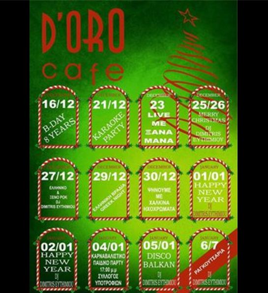 Το πρόγραμμα του D’oro Coffee-Bar στην Καστοριά για τα Χριστούγεννα, Πρωτοχρονιά και Ραγκουτσάρια, την Παρασκευή 6 Ιανουαρίου