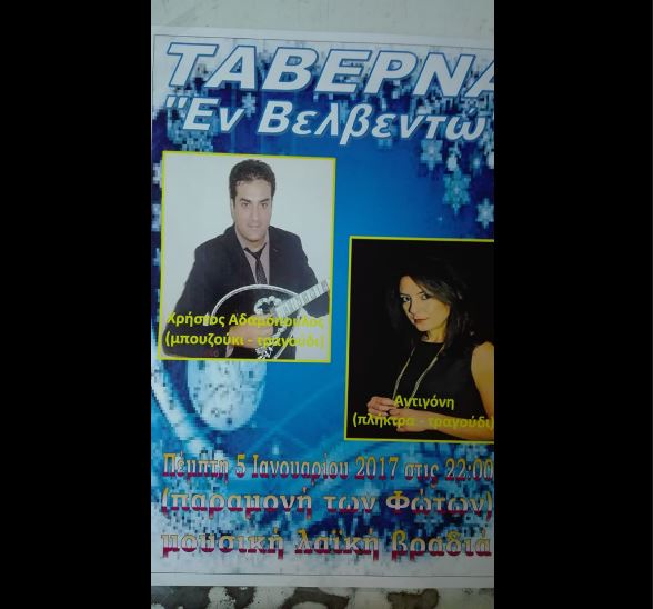 Ζωντανή μουσική στην Ταβέρνα “Εν Βελβεντό”την Πέμπτη 5 Ιανουαρίου
