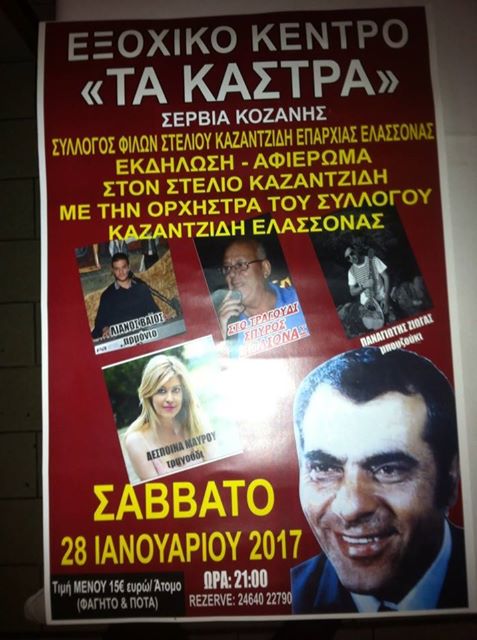 Μουσικό αφιέρωμα στον Στέλιο Καζαντζίδη στο εξοχικό κέντρο “Τα Κάστρα” στα Σέρβια, το Σάββατο 28 Ιανουαρίου