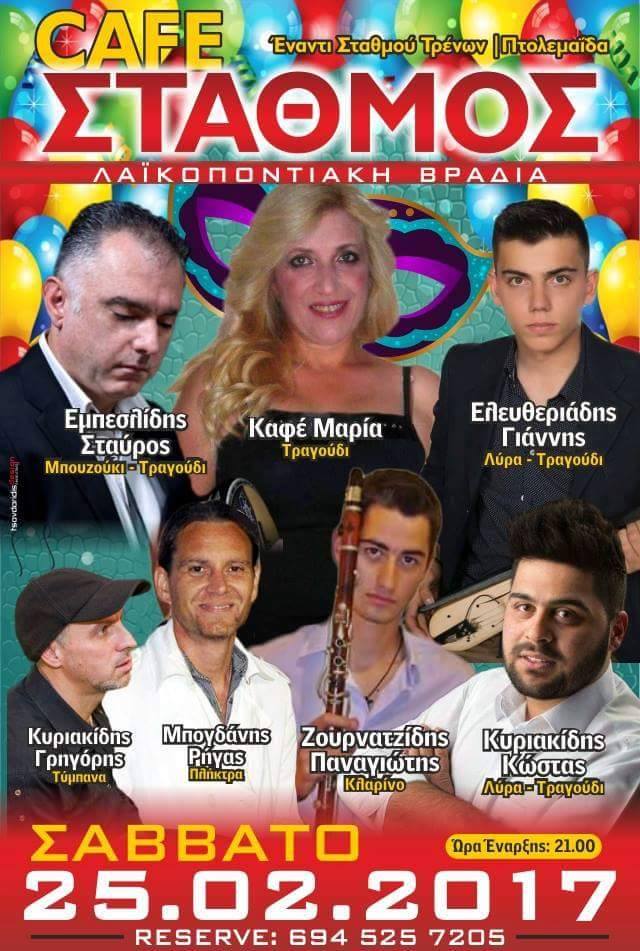 Λαϊκή Ποντιακή βραδιά στο cafe Σταθμός στην Πτολεμαΐδα, το Σάββατο 25 Φεβρουαρίου .