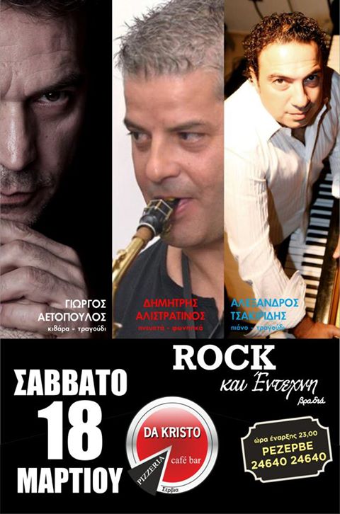 Rock Και έντεχνη βραδιά στην πιτσαρία Da Kristo στα Σέρβια, το Σάββατο 18 Μαρτίου .