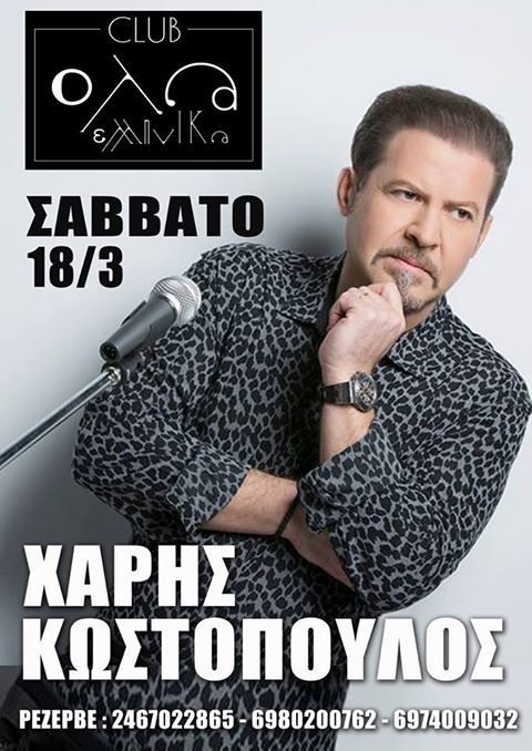 Ο Χάρης Κωστόπουλος live στο club “Όλα Ελληνικά” στην Καστοριά, το Σάββατο 18 Μαρτίου
