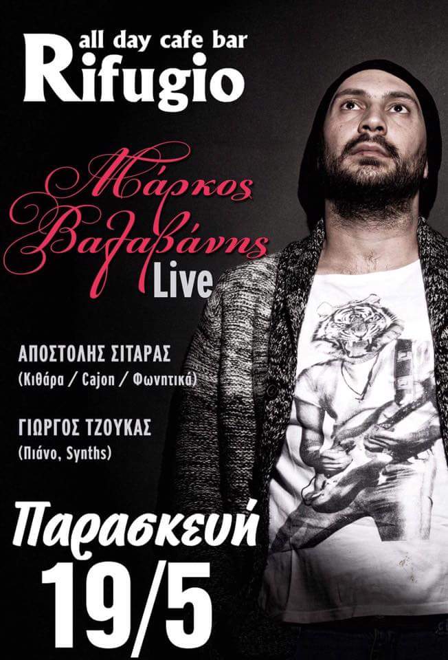 Ο Μάρκος Βαλαβάνης Live στο all day bar Rifugio στην Πτολεμαΐδα, την Παρασκευή 19 Μαΐου