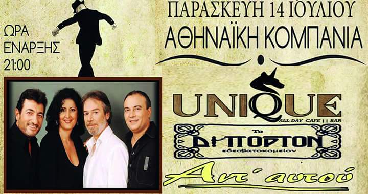 Η Αθηναϊκή Κομπανία στο Unique, Αντ΄αυτου, δίπορτον στην Πτολεμαΐδα, την Παρασκευή 14 Ιουλίου