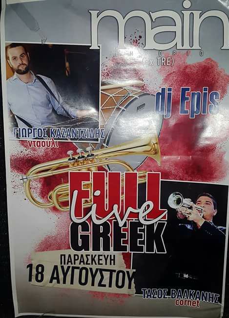 Full live Greek στο main bar στο Εμπόριο Εορδαίας, την Παρασκευή 18 Αυγούστου .