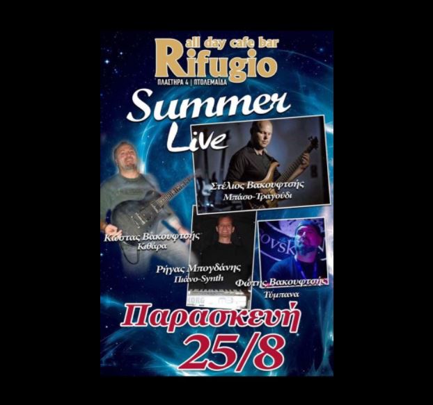 Summer live στο Rifugio bar στην Πτολεμαΐδα, την Παρασκευή 25 Αυγούστου .
