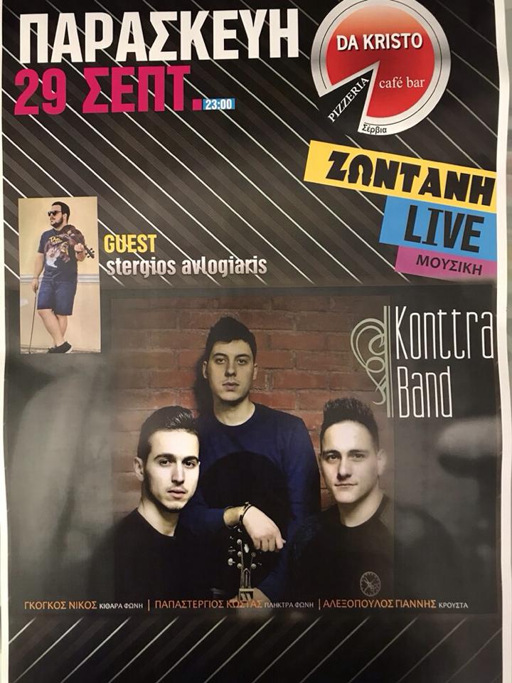 Ζωντανή μουσική βραδιά στο Da Kristo στα Σέρβια, την Παρασκευή 29 Σεπτεμβρίου .