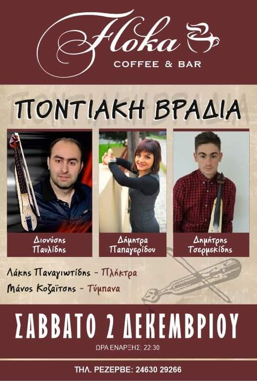 Ποντιακή βραδιά στο Floka caffee bar στην Πτολεμαΐδα, το Σάββατο 2 Δεκεμβρίου