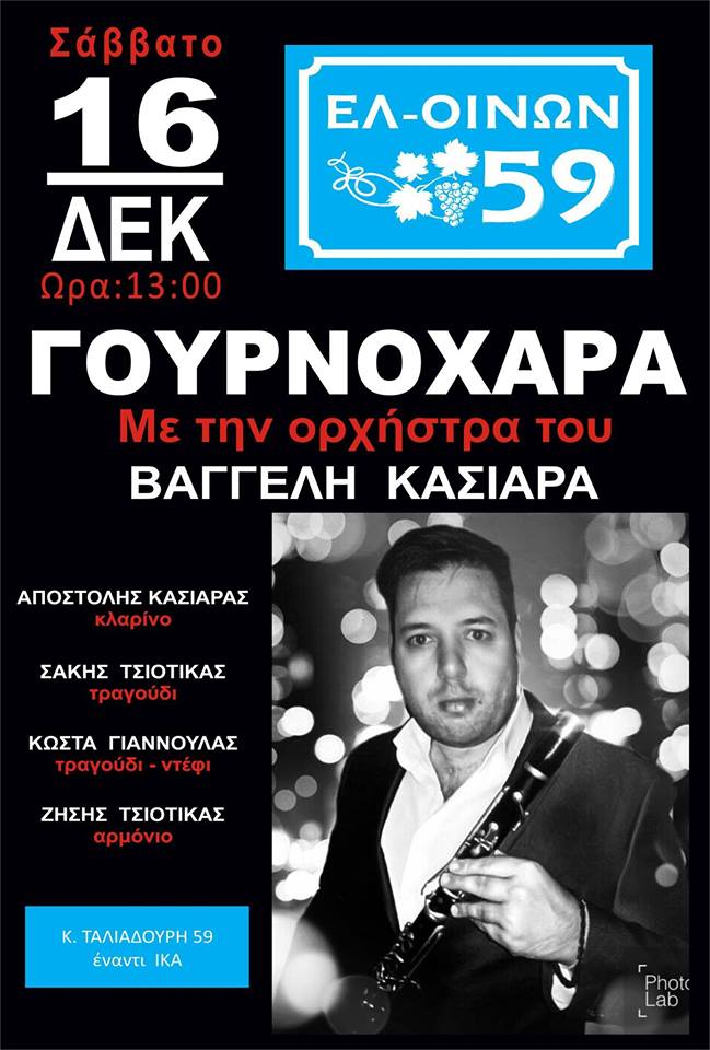 “Γουρνοχαρά” με ζωντανή μουσική στο ΕΛ-ΟΙΝΩΝ στα Γρεβενά, το Σάββατο 16 Δεκεμβρίου .