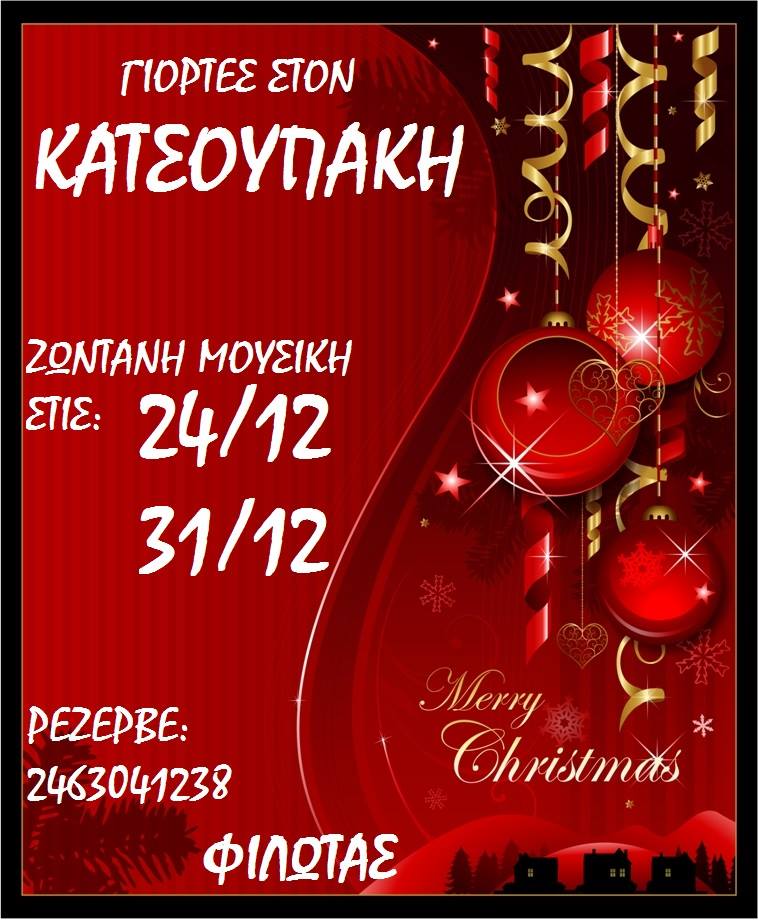 Παραμονή Χριστουγέννων και Πρωτοχρονιάς με ζωντανή μουσική στην ταβέρνα του “Κατσουπάκη” στον Φιλώτα .