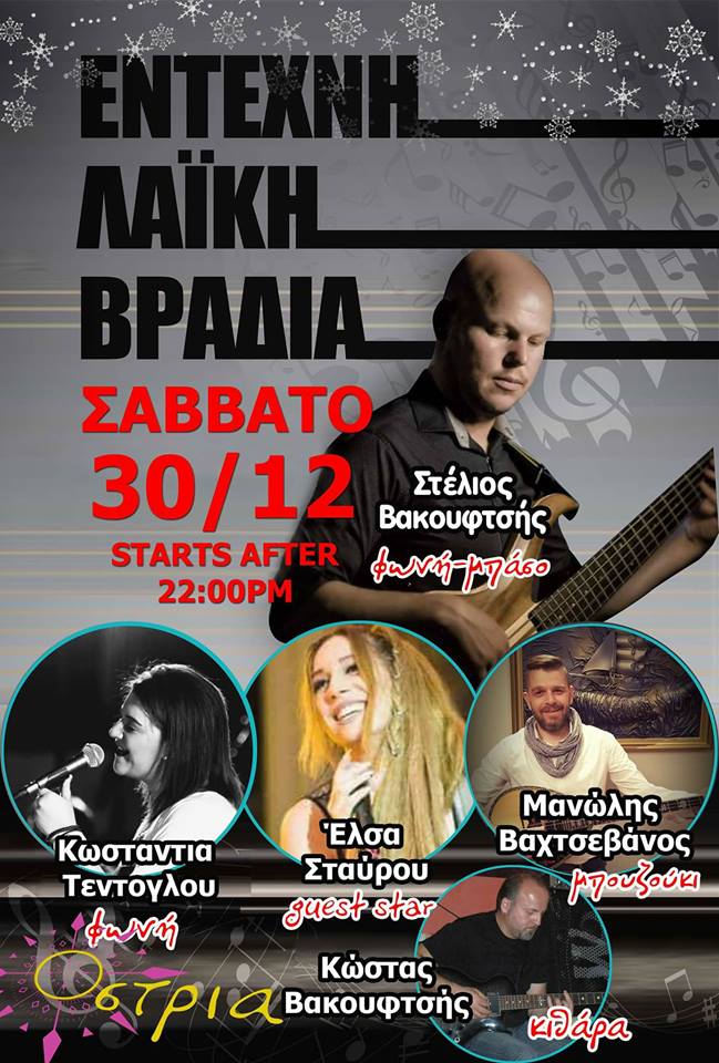Έντεχνη λαϊκή βραδιά στο cafe Όστρια στην Νεράιδα, το Σάββατο 30 Δεκεμβρίου