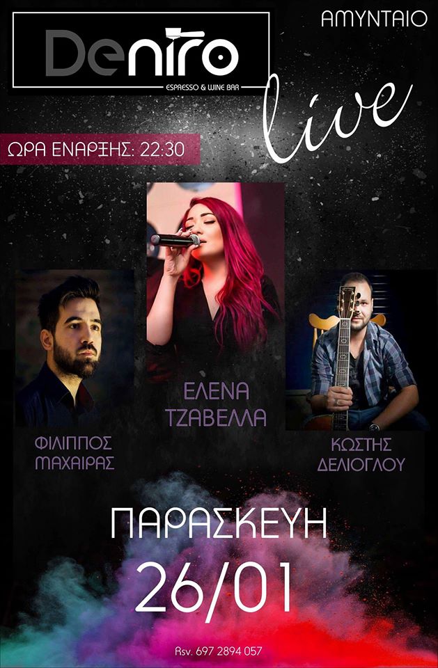 Ζωντανή μουσική βραδιά στο bar Deniro στο Αμύνταιο, την Παρασκευή 26 Ιανουαρίου .