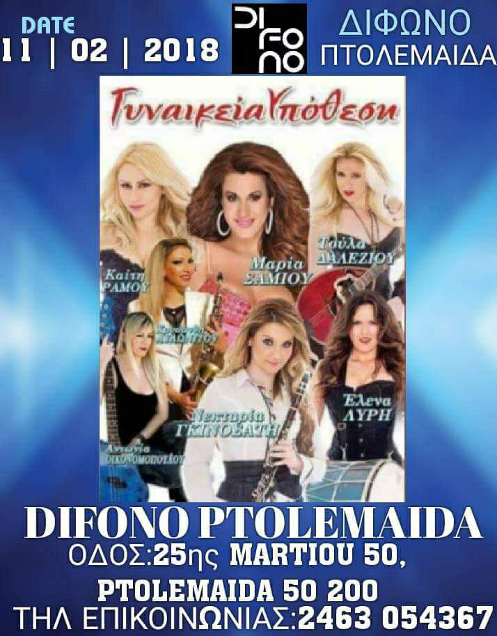 Η “Γυναικεία Υπόθεση” στο bar Difono στην Πτολεμαΐδα, την Κυριακή 11 Φεβρουαρίου (Μικρή Αποκριά).