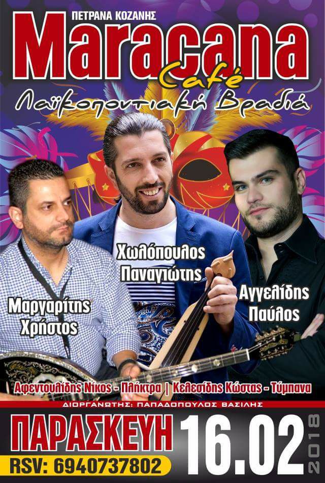 Λαϊκοποντιακή βραδιά στο Maracana στα Πετρανά Κοζάνης, την Παρασκευή 16 Φεβρουαρίου .