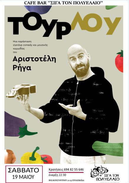 ”Τουρλού” Stand Up Comedy με τον Αριστοτέλη Ρήγα, το Σάββατο 19 Μαϊού, στο ”Σιγά τον Πολυέλαιο”στην Πτολεμαΐδα