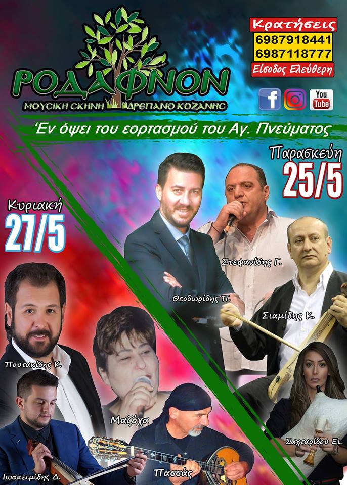 Παρασκευή 25/5 και Κυριακή 27/5 γλέντι στη Μουσική σκηνή ΡΟΔΑΦΝΟΝ στο Δρέπανο Κοζάνης