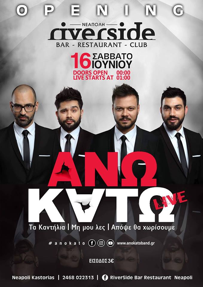 Opening του riverside στην Νεάπολη με τους “Άνω Κάτω”, το Σάββατο 16 Ιουνίου .