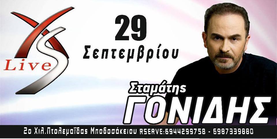 Ο Σταμάτης Γονίδης στο Xs live στην Πτολεμαΐδα, το Σάββατο 29 Σεπτεμβρίου .