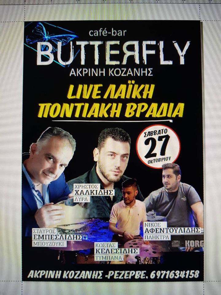 Live Λαϊκή ποντιακή βραδιά στο cafe bar Butterfly στην Ακρινή, το Σάββατο 27 Οκτωβρίου