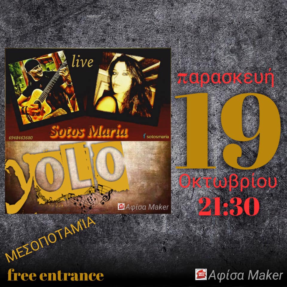 Ζωντανή μουσική βραδιά στο Yolo bar στην Μεσοποταμία, την Παρασκευή 19 Οκτωβρίου .