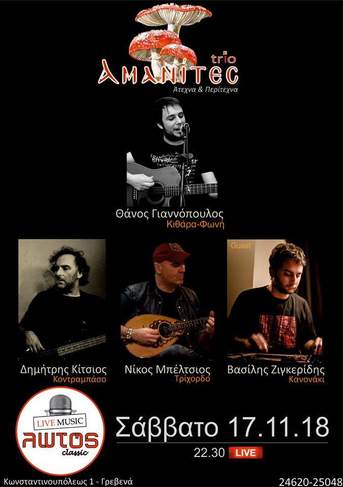 Το Σάββατο 17-11-18 Αμανίτες trio & Βασίλης Ζιγκερίδης