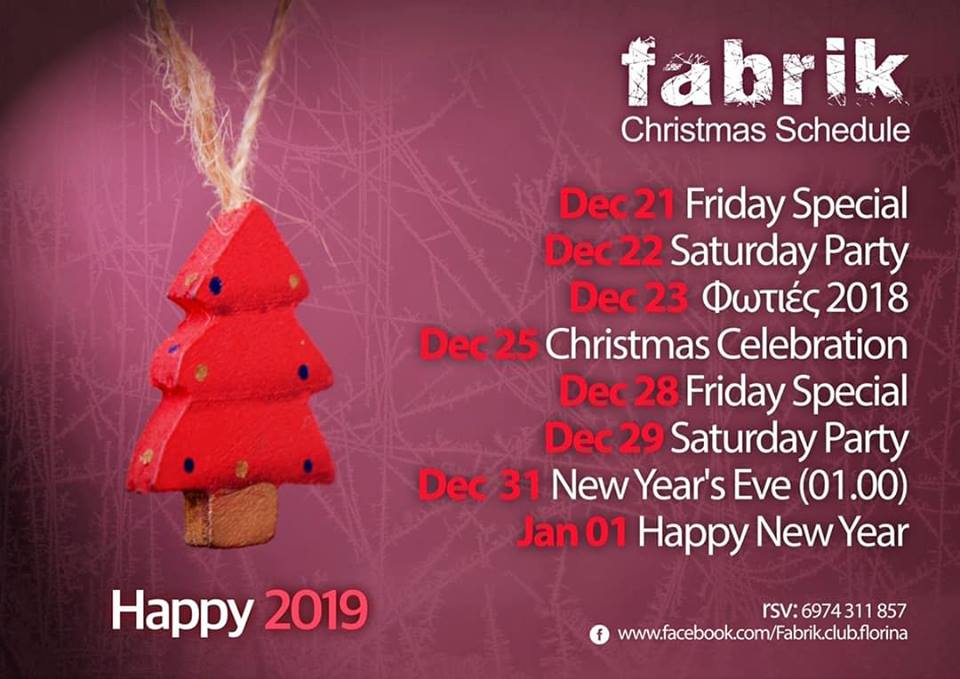 Το πρόγραμμα των εκδηλώσεων του Fabrik club στην Φλώρινα 21/12-1/1.