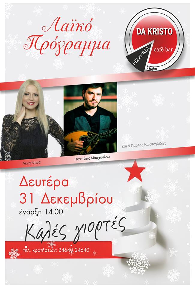 Ρεβεγιόν πρωτοχρονιάς με λαϊκό πρόγραμμα στο Da Kristo στα Σέρβια .