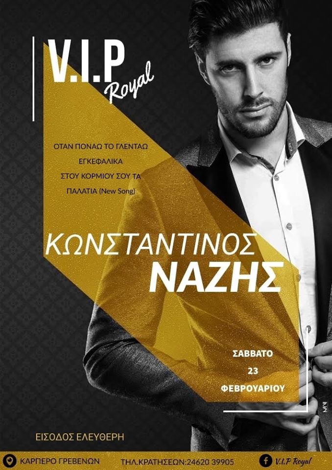 Κωνσταντίνος Ναζης live στο V.I.P royal στο Καρπερό Γρεβενών, το Σάββατο 23 Φεβρουαρίου .