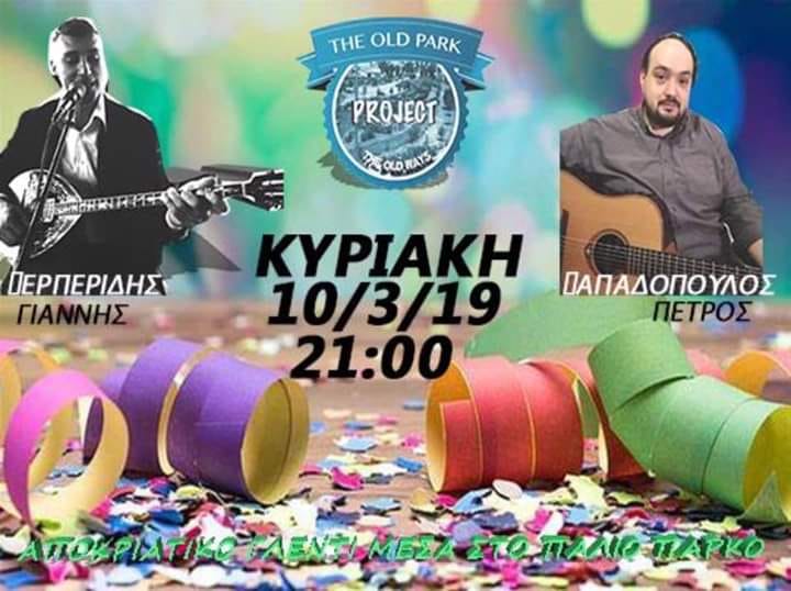 Αποκριάτικο γλέντι στο The old park Project στην Πτολεμαΐδα, την Κυριακή 10/3.