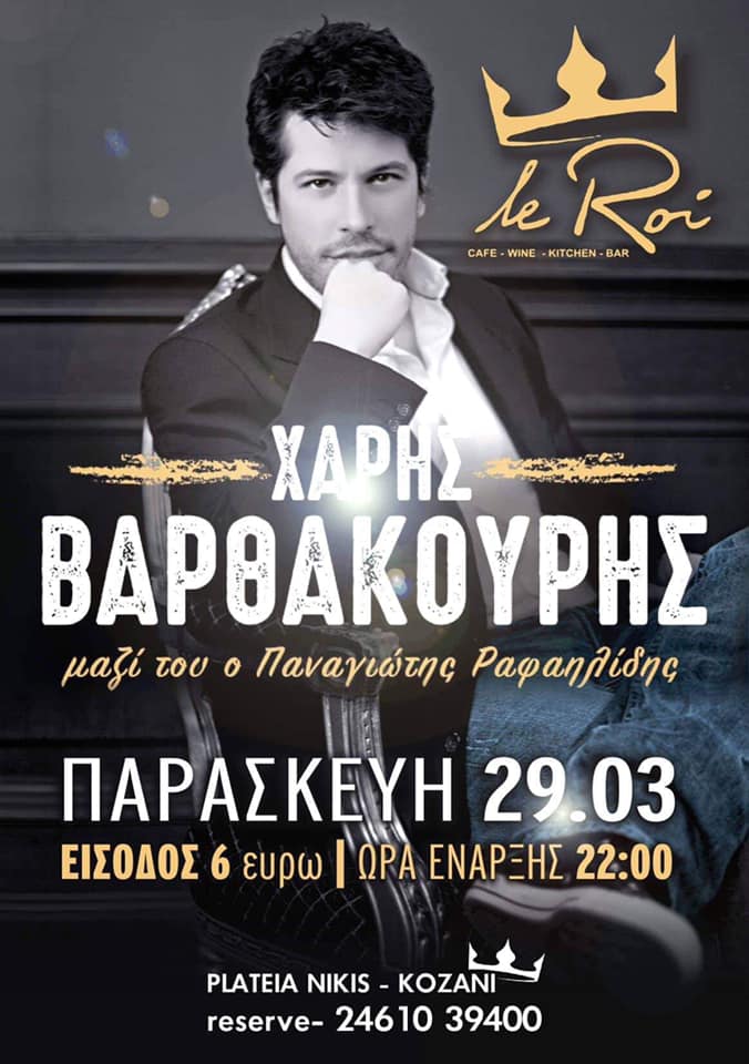 Ο Χάρης Βαρθακούρης live στο Le Roi bar στην Κοζάνη, την Παρασκευή 29 Μαρτίου