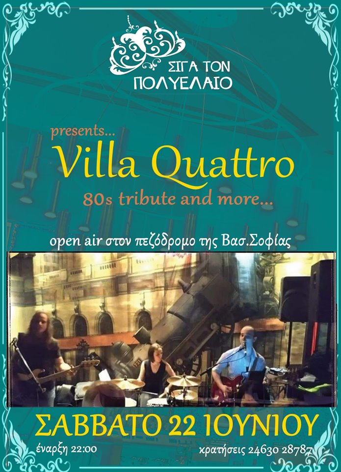 Villa Quattro live 80s Tribute στο bar “Σιγά τον Πολυέλαιο” στην Πτολεμαΐδα, το Σάββατο 22 Ιουνίου .