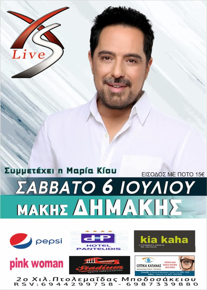 O Μάκης Δημάκης live στο Xs live στην Πτολεμαΐδα, το Σάββατο 6 Ιουλίου