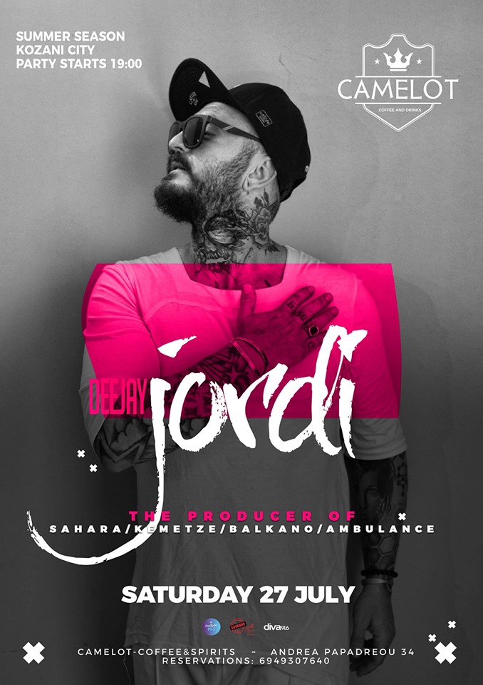 Ο Deejay Jordi στο Camelot Coffees & Spirits στην Κοζάνη, το Σάββατο 27 Ιουλίου .